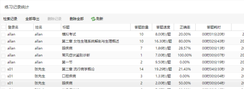 可以选择组,查看某个部门学员作答情况。