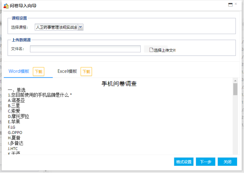 (1)按照模板样式编辑Word文件,导入问卷题目。