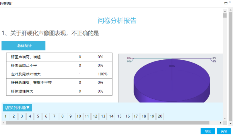 分组统计:统计各个部门学员问卷完成人数,比例等。